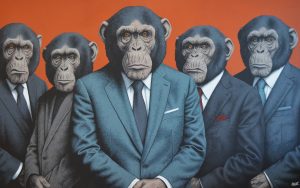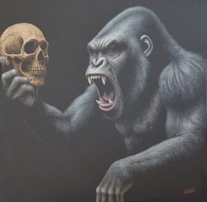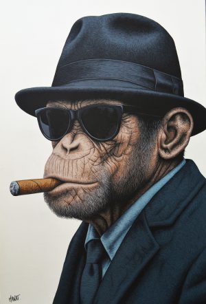 Artiste autodidacte, Manat veut la perfection dans le détail, il joue merveilleusement bien avec la texture des vêtements qui habillent  singes et gorilles avec beaucoup de dérision.